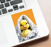 Un simpatico anatroccolo fa capolino da sotto un morbido asciugamano bianco. Le sue soffici piume gialle e i suoi occhi curiosi creano una scena adorabile e affascinante.