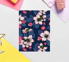 Il disegno dettagliato presenta una varietà di fiori vivaci visitati da api indaffarate.