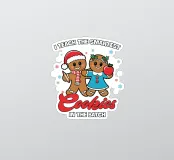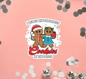 Due sorridenti biscotti di pan di zenzero sono vestiti a festa, uno con un cappello da Babbo Natale e l'altro con una mela in mano. La frase "Insegno ai biscotti più intelligenti del lotto" è stampata intorno a loro, aggiungendo un tema giocoso ed educativo.