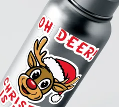 Adesivi realizzati in film PP/PET con laminazione protettiva e diverse tipologie di superficie.