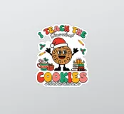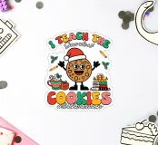 Un allegro biscotto con un cappello da Babbo Natale è circondato da decorazioni festive, libri e cioccolata calda. La scritta "Insegno ai biscotti più intelligenti #tistheseason" aggiunge un messaggio giocoso e a tema natalizio.