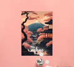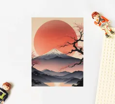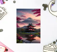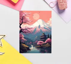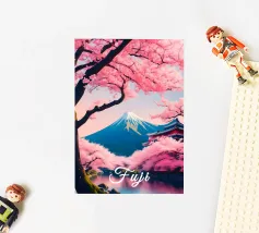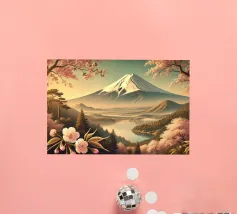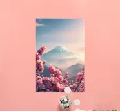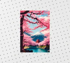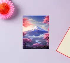 Una vista mozzafiato del maestoso Monte Fuji che si staglia nel cielo limpido di primavera. In primo piano, delicati fiori di ciliegio (sakura) danzano nel vento, conferendo alla scena una poetica leggerezza. La combinazione tra la forza della natura e la bellezza dei fiori simboleggia la transitorietà, l'armonia e il profondo legame tra la cultura giapponese e la natura. Questa immagine cattura perfettamente la magia della stagione della fioritura dei ciliegi, ideale per opere d'arte da parete, calendari o diari di viaggio. Suggerimento: perfetto per tutti coloro che sognano di viaggiare o che vogliono portare un pezzo di tranquillità e di estetica giapponese nella loro casa.