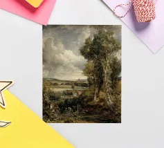 John Constable è stato un rinomato pittore di paesaggi inglese del XIX secolo, noto soprattutto per le sue romantiche rappresentazioni della campagna inglese, in particolare dell'area intorno alla sua casa nel Suffolk, che divenne nota come "Constable Country". Nato nel 1776, Constable rifiutò i paesaggi idealizzati a favore di scene naturalistiche, catturando la bellezza della vita rurale con grande attenzione alla luce, all'atmosfera e alle formazioni nuvolose. Tra le sue opere più famose ricordiamo The Hay Wain e Dedham Vale. Sebbene non sia stato molto apprezzato durante la sua vita, Constable è oggi celebrato come uno dei più grandi paesaggisti britannici.