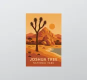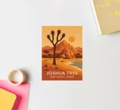 Tramonti infuocati, rocce rosse e le indimenticabili sagome degli alberi di Joshua. Questo poster riassume l'essenza cruda e mistica del deserto californiano. Uno stile forte, sia grafico che contemplativo
