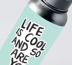 Adesivi realizzati in film PP/PET con laminazione protettiva e diverse tipologie di superficie.