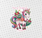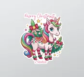 Entrate in un mondo di magia natalizia con questo unicorno addobbato a festa! Vestito con strisce di canna da zucchero e circondato da stelle scintillanti, foglie di agrifoglio e nastri natalizi, questa stravagante creatura porta un'esplosione di gioia arcobaleno al vostro guardaroba stagionale. I colori vivaci e i dettagli incantevoli rendono questo disegno perfetto per diffondere l'allegria delle feste ovunque si vada! Perfetto per: Feste di Natale, incontri festivi o semplicemente per abbracciare la magia della stagione.