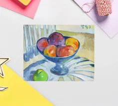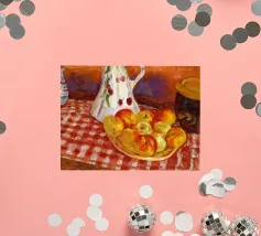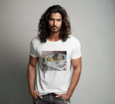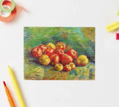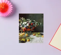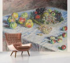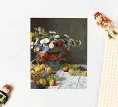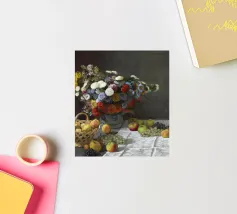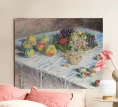Un'affascinante natura morta del maestro impressionista Claude Monet, che mette in mostra la tranquilla eleganza degli oggetti quotidiani Presenta una disposizione rustica di mele e uva su un tavolo rivestito di bianco, immerso in una morbida luce naturale Cattura la bellezza fugace della frutta matura con pennellate sciolte e tonalità calde e autunnali Un'opera intima che si discosta dai famosi paesaggi di Monet e che è stata dipinta in casa durante il maltempo. Un'opera d'arte senza tempo e rilassante, perfetta per cucine, sale da pranzo o qualsiasi altro interno accogliente Regalo ideale per gli amanti dell'arte, per i cuochi o per chi apprezza l'estetica rustica e la natura morta