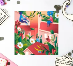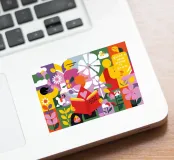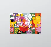 Una persona è immersa in un libro circondato da fiori vivaci, con la scritta "turn a new leaf" (voltare pagina) che crea un'opera ispirata e splendidamente illustrata sulla crescita, la lettura e i nuovi inizi.
