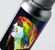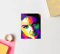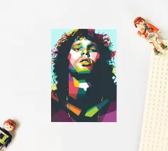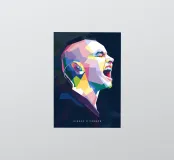 Un ritratto vibrante e geometrico di Sinead O'Connor in stile WPAP, caratterizzato da forme audaci e angolari e da un'impressionante gamma di colori vivaci e contrastanti. L'opera cattura i suoi tratti iconici, come la testa rasata, gli occhi penetranti e la forte espressione facciale, utilizzando blocchi di colore nitidi e frammentati. La composizione enfatizza la profondità e l'emozione mantenendo l'estetica pop-art cubista distintiva di WPAP, creando un tributo visivamente dinamico e moderno alla leggendaria cantante.