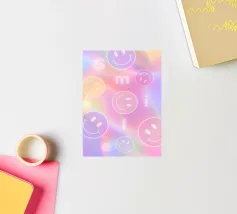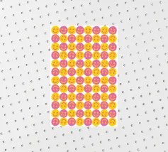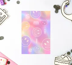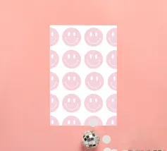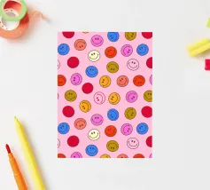 Il motivo colorato Faccine sorridenti è un semplice ma accattivante motivo luminoso nei colori rosa, arancione, giallo e rosso. Presenta molte facce sorridenti che mettono di buon umore. Motivo felice e ottimista ispirato allo stile retrò anni '70 di showmemars