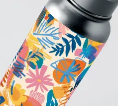 Adesivi realizzati in film PP/PET con laminazione protettiva e diverse tipologie di superficie.