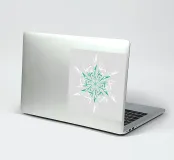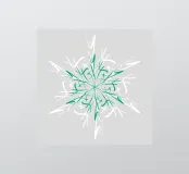 Design invernale: una stella dinamica a sei punte disegnata a mano in bianco e verde su uno sfondo grigio argento.