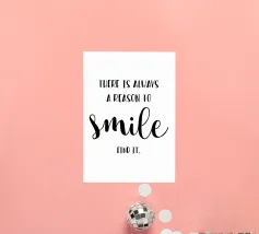 Poche parole e tanta verità! Un disegno che si adatta al motto della vita. C'È SEMPRE UN MOTIVO PER SORRIDERE. C'è sempre un motivo per sorridere. Una tipografia minimalista con un tocco di colore versato addolcisce la vostra giornata.