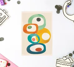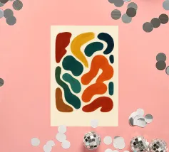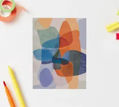 Colori vivaci in un movimento fluido: Questo poster d'arte moderna mostra forme intrecciate, simili a nastri, nei colori rosa, arancione, giallo e blu. La composizione curva crea un equilibrio dinamico e una profondità visiva grazie alla sovrapposizione delle trasparenze. Perfetto per spazi creativi, interni moderni e pareti colorate con un occhio di riguardo al design.