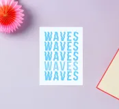 Immergetevi nel flusso della creatività con questo splendido disegno tipografico a onde. Caratterizzata da caratteri fluidi e ondulati che imitano il ritmo e il movimento dell'oceano, questa opera d'arte cattura un senso di serenità e movimento. Perfetto per chi ama l'arte minimalista, le vibrazioni costiere e la tipografia creativa.