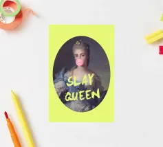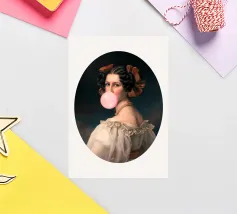 Abbracciate lo stile senza sforzo con "I Woke Up Like This", una divertente stampa pop art che fonde con umorismo la ritrattistica classica con una frase moderna e popolare. Questa accattivante opera d'arte raffigura una figura storica regale, adornata da delicati fiori, che soffia giocosamente una bolla di gomma da masticare rosa lucido. Il testo rosa acceso "I WOKE UP LIKE THIS" (Mi sono svegliata così) sovrasta l'immagine e rappresenta un'affermazione spiritosa e comprensibile sulla bellezza naturale (o su una mattinata informale!). Gli schizzi di vernice rosa aggiungono un tocco di stile. È una miscela perfetta di fascino senza tempo e umorismo contemporaneo, ideale per aggiungere personalità e un tocco di leggerezza.