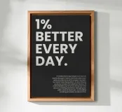 Arte da parete motivazionale per tutti i giorni: il poster minimalista "1% Better Every Day" vi ricorda di raggiungere grandi obiettivi con piccoli passi. Perfetto per l'ufficio, la palestra di casa o il soggiorno: un design pulito e un messaggio forte.