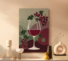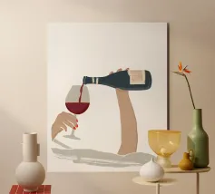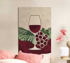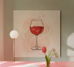 "A Sip of Reflection" è un sottile tributo alla semplicità e alla bellezza delle cose semplici. Toni pacati e linee moderne si uniscono per creare un'opera d'arte rilassante e sofisticata. Questo design è ideale per chi cerca un equilibrio tra uno stile minimalista e il gusto per il buon vino. Perfetto per una sala relax o una cucina, invita a rallentare e ad apprezzare i momenti di tranquillità, valorizzando lo spazio con una palette di colori rossi tenui e armoniosi. Un must per gli eleganti amanti del vino.