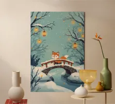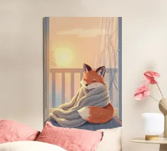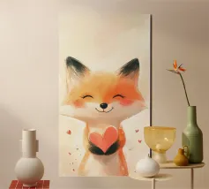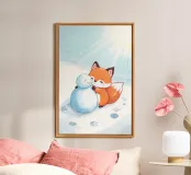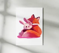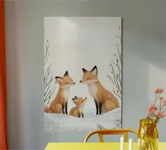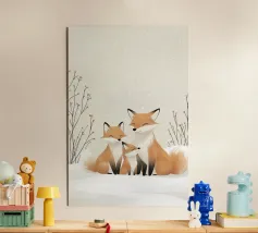 La volpe Voxy abbraccia dolcemente il suo piccolo amico di neve sotto il sole invernale. Colori tenui, impronte giocose e un'accogliente scena innevata rendono quest'opera d'arte perfetta per le camerette dei bambini, le nursery e gli amanti dell'arredamento invernale. Un'illustrazione che fa sciogliere il cuore, piena di amicizia e calore.
