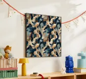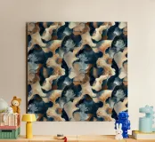 Un moderno motivo mimetico astratto con forme fluide in stile acquerello nei colori blu navy, grigio ardesia, pesca, marrone e crema. Questa rivisitazione artistica della mimetica tradizionale combina motivi di ispirazione militare con un'estetica morbida e acquerellata per un look contemporaneo. Perfetto per gli amanti del camo, per gli appassionati di motivi astratti, per i fan dello stile militare moderno e per tutti coloro che apprezzano la fusione di motivi tattici con la morbidezza artistica dell'acquerello.