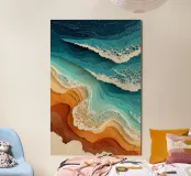 Dove il mare incontra l'anima. "Tide & Texture" è una celebrazione stratificata della bellezza costiera: onde astratte che rotolano su rive baciate dal sole, il tutto reso in uno stile ricco e tattile che evoca la carta fatta a mano e l'acquerello. Questo pezzo fonde la calma dell'oceano con il calore dei toni della terra, perfetto per elevare gli interni moderni con un senso di flusso e di radicamento. Ideale per soggiorni, camere da letto o spazi creativi che desiderano serenità e profondità visiva.