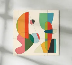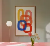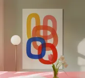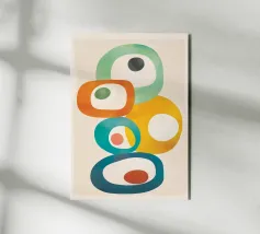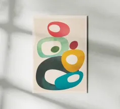 Questo poster d'arte moderna mostra forme sovrapposte e arrotondate in colori vivaci come il blu, il rosso, l'arancione, il rosa e il giallo, apparentemente fluttuanti e interconnesse. L'effetto trasparente dei colori crea profondità e leggerezza allo stesso tempo. Ideale per stanze minimaliste, uffici creativi o come elegante elemento di spicco nella parete della vostra galleria.