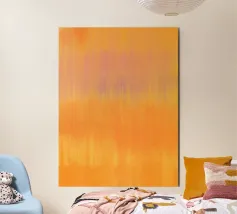Un'opera d'arte astratta minimalista in campo cromatico ispirata a transizioni morbide e bordi grezzi del pennello.