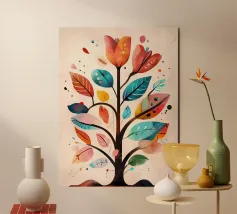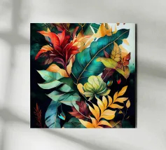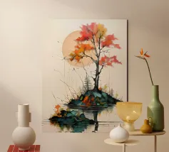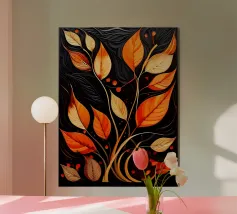 Dove la geometria incontra la natura: foglie vibranti sospese all'interno di un cerchio scuro, che si riversano verso il basso come frammenti di tempo. "Circle of Leaves" è un'esplorazione del contrasto: calore e ombra, ordine e flusso, immobilità e movimento. Minimale ma espressiva, quest'opera d'arte si adatta agli interni moderni, agli spazi di design e alle collezioni stagionali. Un'opera contemplativa per chi apprezza l'astrazione e la bellezza fugace dell'autunno.