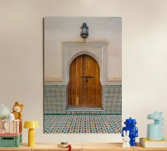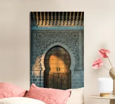 Antico edificio di Fez. Architettura tradizionale marocchina. Fotografia di strada in Marocco.