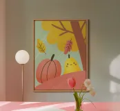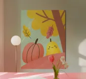 Le allegre illustrazioni presentano zucche e pere con espressioni simpatiche in una calda atmosfera autunnale.