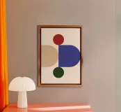 Una composizione astratta suggestiva e armoniosa, caratterizzata da audaci forme geometriche in una tavolozza di colori moderni e terrosi. Con un perfetto equilibrio tra struttura e movimento, quest'opera d'arte trasmette un senso di stabilità e di espressione artistica. Il gioco di blu profondo, beige caldo, verde ricco e rosso deciso aggiunge profondità e contrasto, rendendo l'opera accattivante e rilassante. Ideale per gli interni contemporanei, questa stampa si adatta agli stili di arredamento minimalista, di metà secolo e moderno. Perfetta per l'arte da parete, i poster, le decorazioni per la casa e altro ancora.