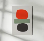 Balancing Shapes No. 2" è un'opera d'arte minimalista con una composizione chiara e una tensione tranquilla. Tre forme semplici e organiche in rosso deciso, verde tenue e nero profondo creano un equilibrio moderno tra energia e quiete. Una dichiarazione minimalista per gli ambienti che devono emanare forza e chiarezza. Perfetto per: Sale studio, soggiorni, pareti di gallerie o studi creativi.