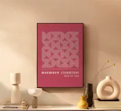 Un manifesto della mostra Bauhaus del 19 luglio 1923, visivamente ipnotico, caratterizzato da un fitto motivo geometrico ripetuto. La grafica principale è un intricato mosaico di linee bianche concentriche a quarto di cerchio che si incastrano a formare cerchi e semicerchi, creando un potente effetto Op Art di profondità e movimento. Questo sorprendente motivo bianco si staglia su un audace sfondo rosa lampone/fucsia. La tipografia minimalista "BAUHAUS EXHIBITION JULY 19, 1923" è posizionata in basso. Questa stampa digitale ad alta risoluzione (7000x5000 pixel, 300 dpi) offre un dettaglio impeccabile, che incarna il rigore di un'opera d'arte.