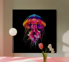 Bioluminescent Jellyfish Floating in the Dark Abyss alluminio dibond