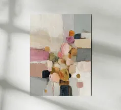 Dieses abstrakte Naturkunstwerk vereint sanfte Pastelltöne in Rosa, Orange, Hellgrau und Petrol zu einer harmonischen Komposition aus organischen Formen und feinen Strukturen. Zarte Pinselstriche und subtile Texturen erzeugen eine ruhige, fast träumerische Atmosphäre. Ideal für moderne Räume, die eine Balance aus Natürlichkeit, Leichtigkeit und künstlerischem Ausdruck suchen.
