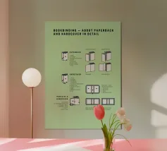 Questa opera d'arte di rilegatura mostra vari metodi di rilegatura in modo dettagliato. L'artista (kathrinmay) ha incluso anche dei dettagli. Ideale per gli amanti dei libri, per i bibliofili o per chi desidera aggiungere un tocco di letteratura e di rilegatura alla propria casa o al proprio ufficio.