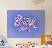 Scrittura Break Rules in eleganti tonalità di blu con un effetto ricco e strutturato.