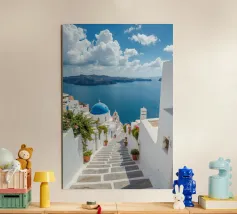 Breathtaking Views of Santorini's Azure Waters alluminio dibond