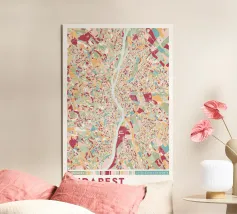 Mappa colorata della città di Budapest, Ungheria.