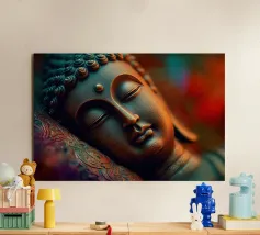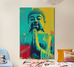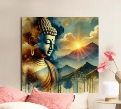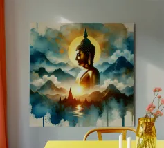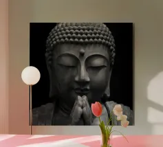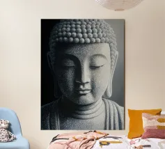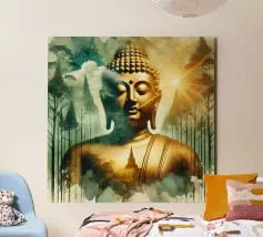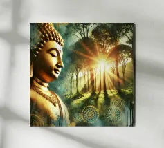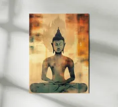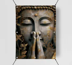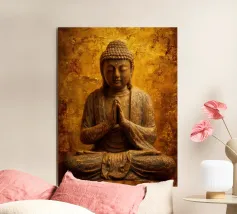 Questo sublime poster mostra una statua di Buddha in posizione di preghiera, circondata da delicati viticci dorati. La rappresentazione fotorealistica con toni caldi dell'oro e freddi dell'argento ricorda l'arte antica dei templi, combinata con una visualizzazione 3D contemporanea. Gli effetti delle intemperie e la morbida patina conferiscono all'opera una profondità spirituale. Perfetto per gli ambienti che devono emanare calma e consapevolezza. Una dichiarazione forte per chiunque apprezzi la saggezza orientale e l'atmosfera meditativa: una spiritualità senza tempo per la casa moderna.