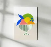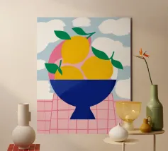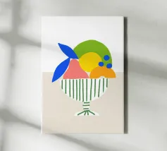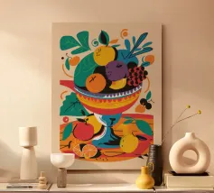 Questo cesto di frutta colorato come illustrazione moderna porta immediatamente freschezza e leggerezza in qualsiasi cucina. Il design colorato combina forme disegnate a mano, linee pulite e un'estetica giocosa - perfetto come murale per la cucina, la sala da pranzo o l'angolo della colazione. La stampa si adatta a concetti di interni sia minimalisti che colorati e aggiunge un accento moderno e amichevole. Ideale per chi è alla ricerca di stampe artistiche fruttate, di decorazioni murali illustrative e di un aggiornamento di stile per la cucina.