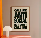 "Call Me Antisocial But Don't Call Me" cattura lo spirito di tranquilla indipendenza con una strizzatina d'occhio. La tipografia minimalista incontra un umorismo asciutto - un pezzo per tutti coloro che apprezzano la pace, la solitudine e l'energia sociale selettiva. Semplice, audace e perfettamente relazionabile in un mondo che non smette mai di chiamare.