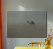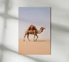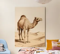 Cammello in piedi nel deserto. Mentre soffia il vento e arriva una tempesta di sabbia. Paesaggio in Etiopia, in Africa.