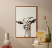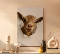 Questa incantevole fotografia raffigura un'adorabile capra, che cattura il suo fascino giocoso e la sua personalità unica. Perfetta per gli amanti delle capre e per gli appassionati di arredamento rustico, questa stampa di animali della fattoria aggiunge un tocco di decorazione ispirata alla natura a qualsiasi cameretta o stanza dei bambini.