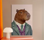 Un raffinato capibara vestito con un abito classico, che unisce fascino ed eleganza a un delicato tocco di umorismo - perfetto per le pareti della cameretta o per spazi giocosi.
