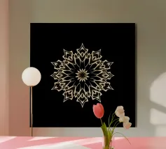 A mesmerizing, ethereal flower unfolds against a deep black background, radiating an otherworldly glow. Its intricate petals and delicate lines evoke a sense of cosmic beauty and tranquility.