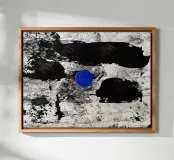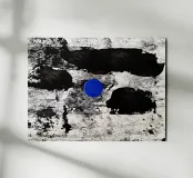Un intenso punto di calma nel caos. Il cerchio blu attira lo sguardo come un occhio interiore di quiete, mentre le tonalità grezze del nero e del grigio creano movimento e struttura. Quest'opera simboleggia il momento in cui tutto il rumore tace, simbolo di concentrazione, meditazione ed equilibrio interiore.