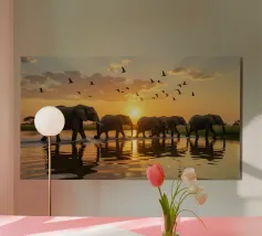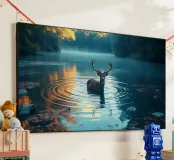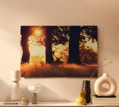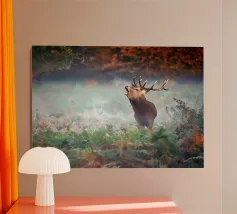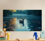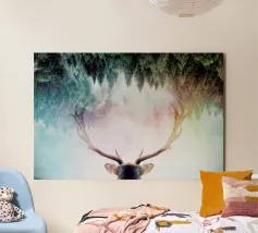 Cervi in un fiume tranquillo alluminio dibond