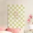 scritta ciao ciao ciao su motivo a quadri color pistacchio.