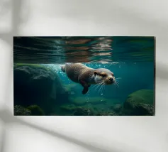 Lontra che si tuffa in un fiume